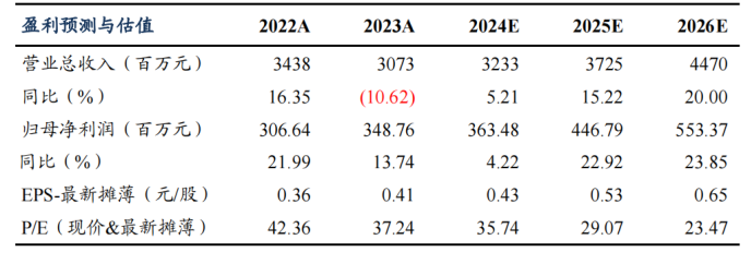 考虑行业短期需求的影响,东吴证券对公司各业务线的增速进行一定程度的下调;我们预计归母净利润分别为3.63/4.47/5.53亿元(前值为4.29/5.32/6.51亿元),同比增速分别为4%、23%、24%,对应PE分别为36/29/23倍。考虑后续随着需求回暖订单有望逐渐恢复,依旧看好公司作为行业领头公司的优势地位,维持“买入”评级。