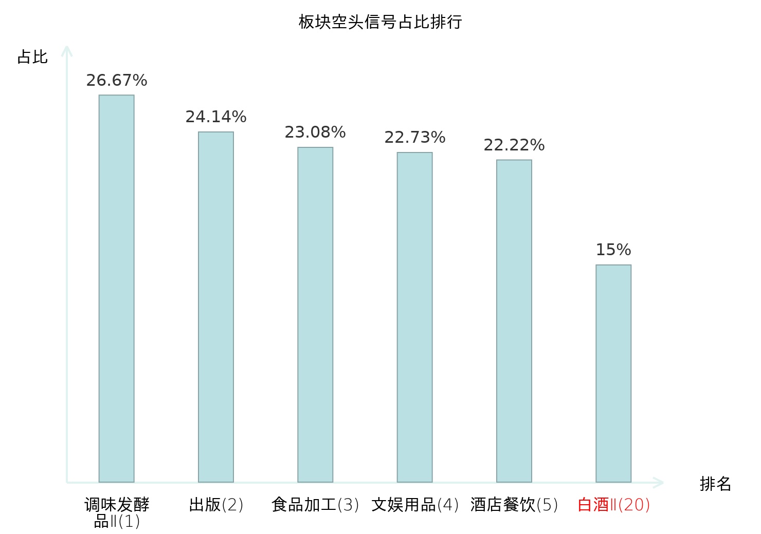 全市场所有行业板块中主力空头信号占比排名中,调味发酵品Ⅱ板块位居第一。中药Ⅱ板块名次提升最快,较昨日上升110位。