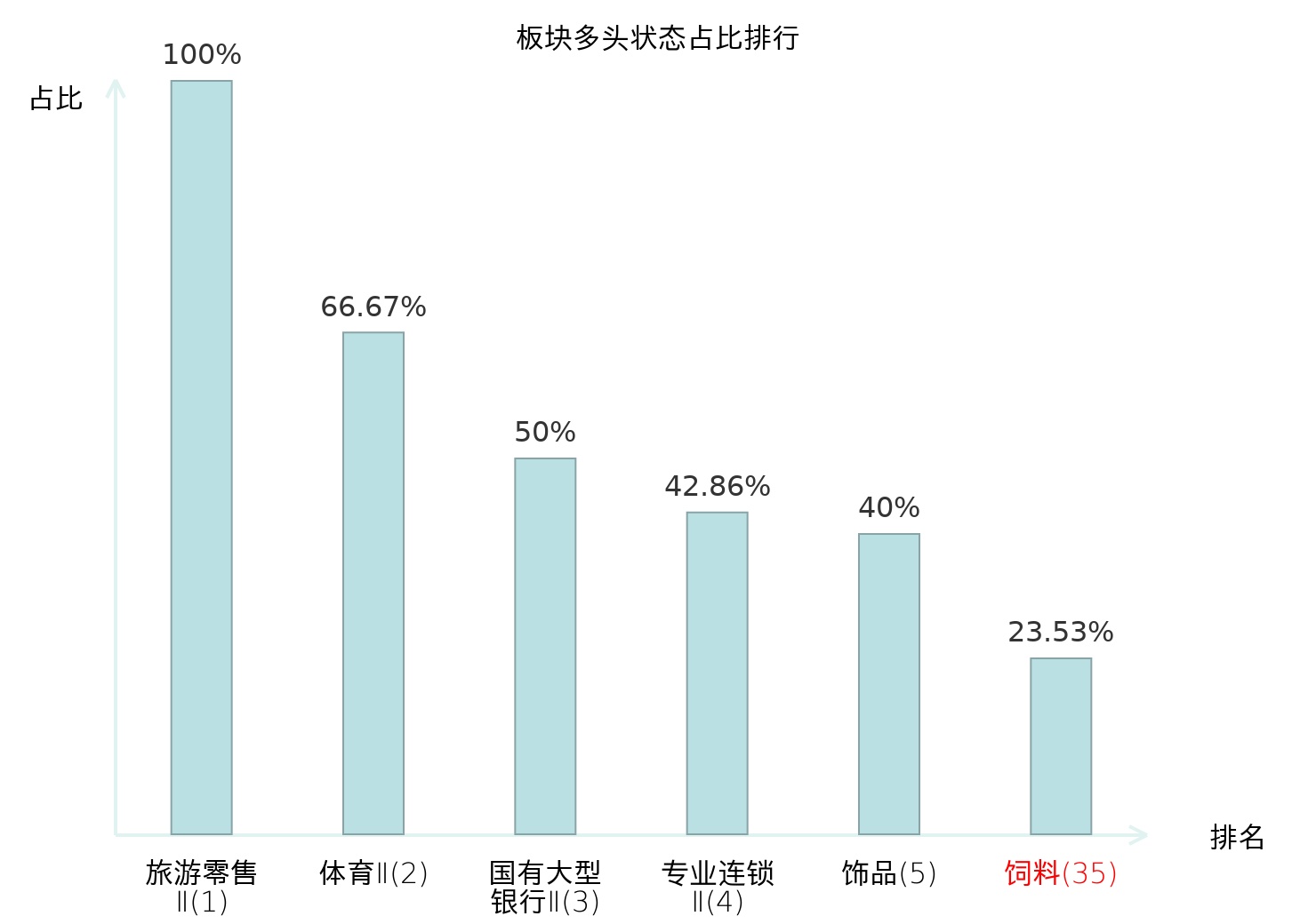 全市场所有行业板块中主力多头状态占比排名中,旅游零售Ⅱ板块位居第一。半导体板块名次提升最快,较昨日上升78位。