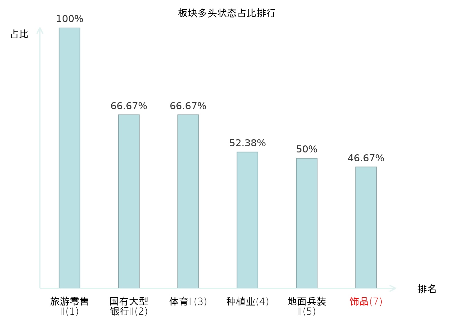 全市场所有行业板块中主力多头状态占比排名中,旅游零售Ⅱ板块位居第一。股份制银行Ⅱ板块名次提升最快,较昨日上升54位。