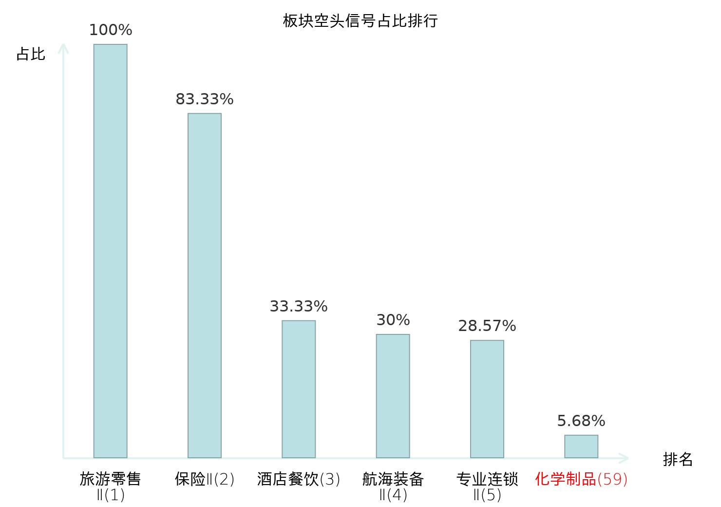全市场所有行业板块中主力空头信号占比排名中,旅游零售Ⅱ板块位居第一。风电设备板块名次提升最快,较昨日上升101位。
