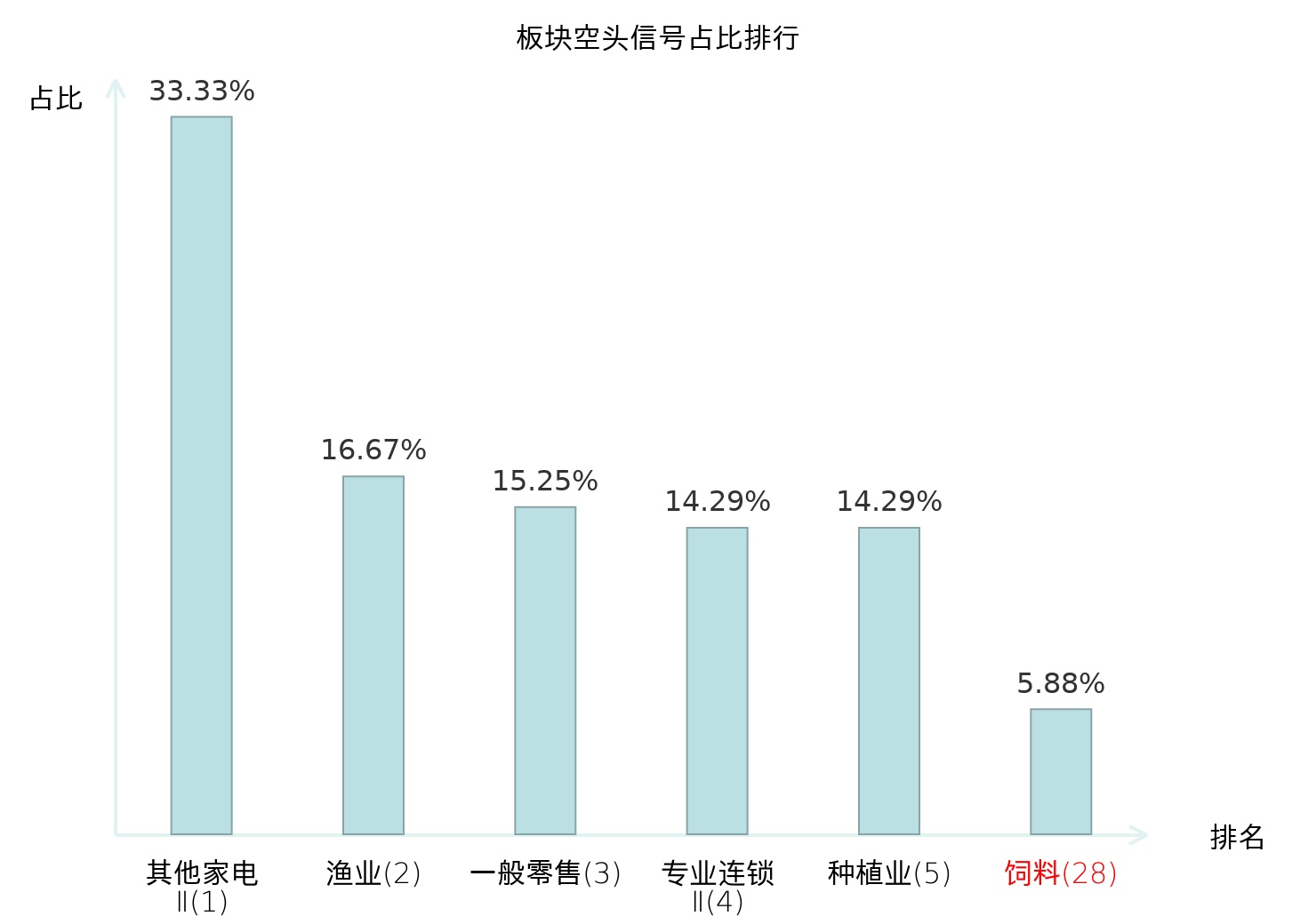 从主力宝信号数据分析,大北农所属的饲料板块中共1只股票发出主力空头信号,主力空头信号占比在全行业中排名第28位,较昨日上升84位。较高的排名表明主力当日卖出意愿较强,此次排名上升可能反映了主力对该板块态度的转变,对投资者了解市场情绪和潜在风险具有参考价值。全市场所有行业板块中主力空头信号占比排名中,其他家电Ⅱ板块位居第一;造纸板块名次提升最快,较昨日上升115位。这些变动揭示了不同行业间主力资金动向的趋势,为投资者提供了关于市场情绪和潜在风险的重要线索。