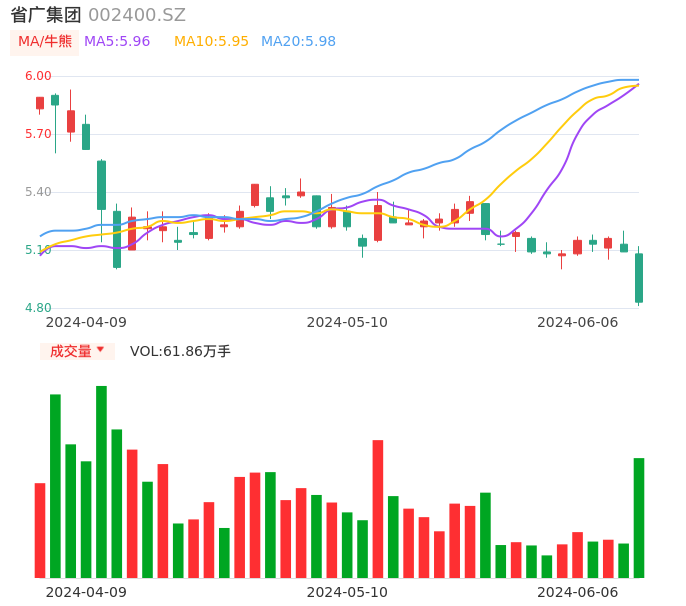 06月06日,省广集团收报4.83,股价涨幅-5.11%,成交金额3.04亿元,换手率3.58%。