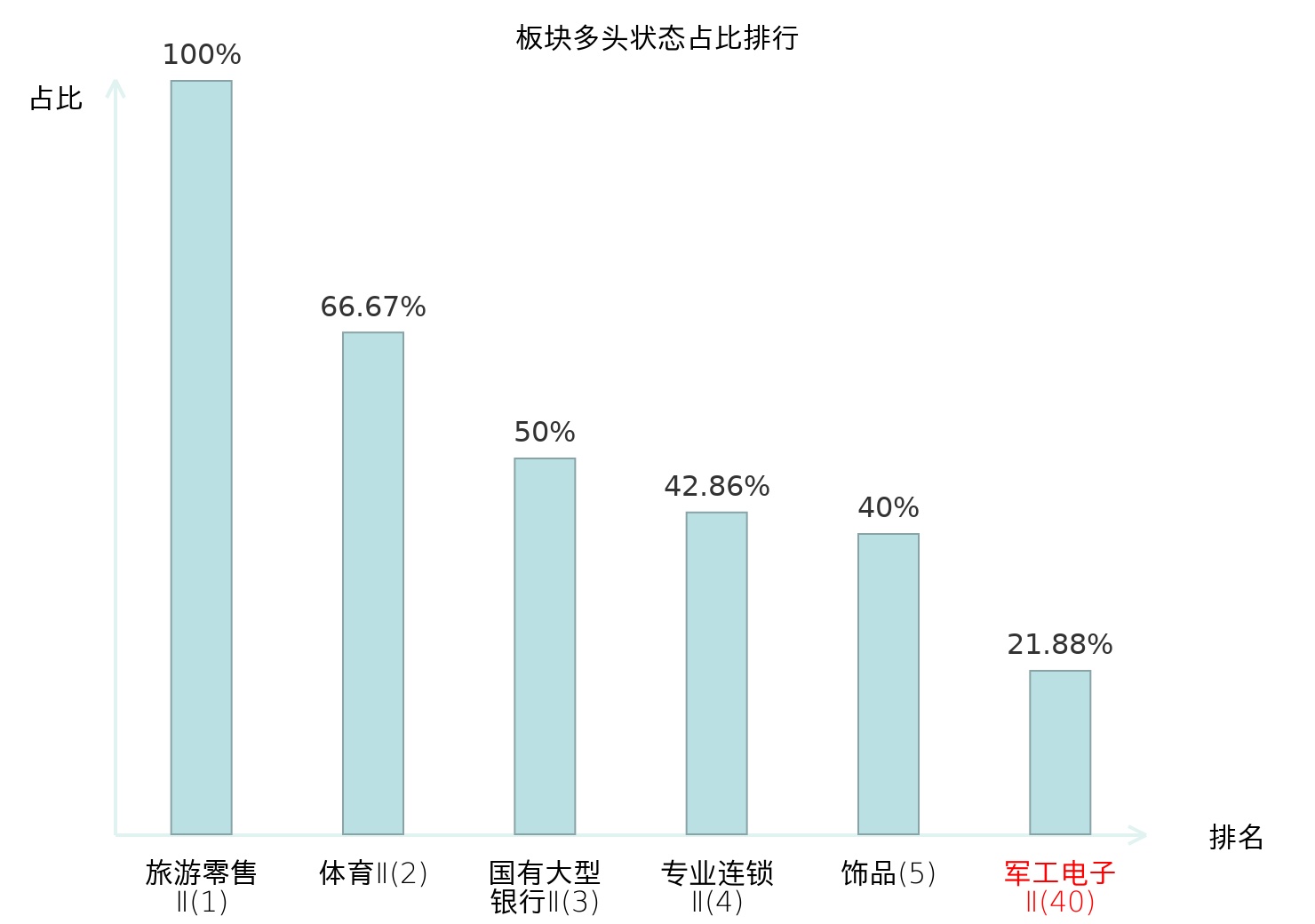 全市场所有行业板块中主力多头状态占比排名中,旅游零售Ⅱ板块位居第一。半导体板块名次提升最快,较昨日上升78位。