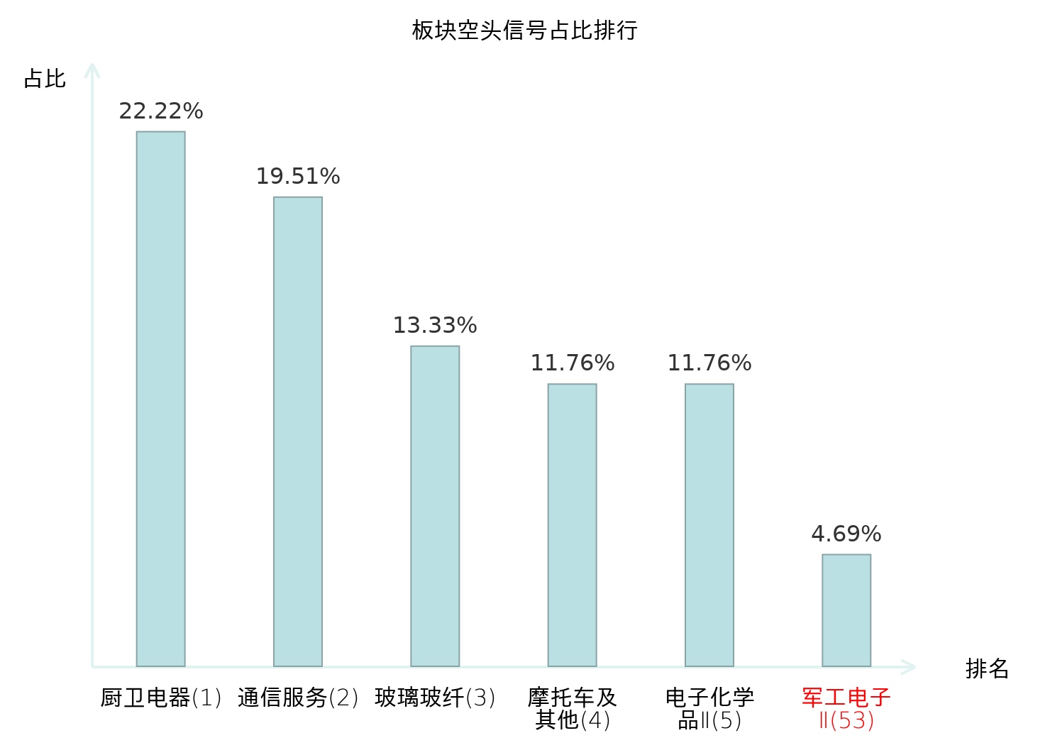 全市场所有行业板块中主力空头信号占比排名中,厨卫电器板块位居第一。家电零部件Ⅱ板块名次提升最快,较昨日上升121位。