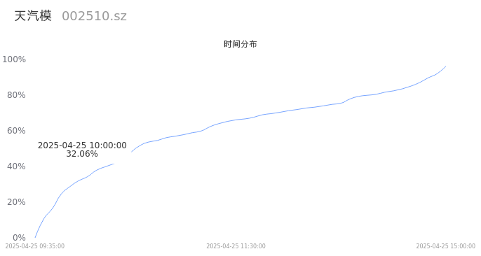 002510天汽模2025年04月25日成交49.73万手,成交金额2.88亿,相较昨日缩量42.32万手,换手率4.95%,成交清淡。