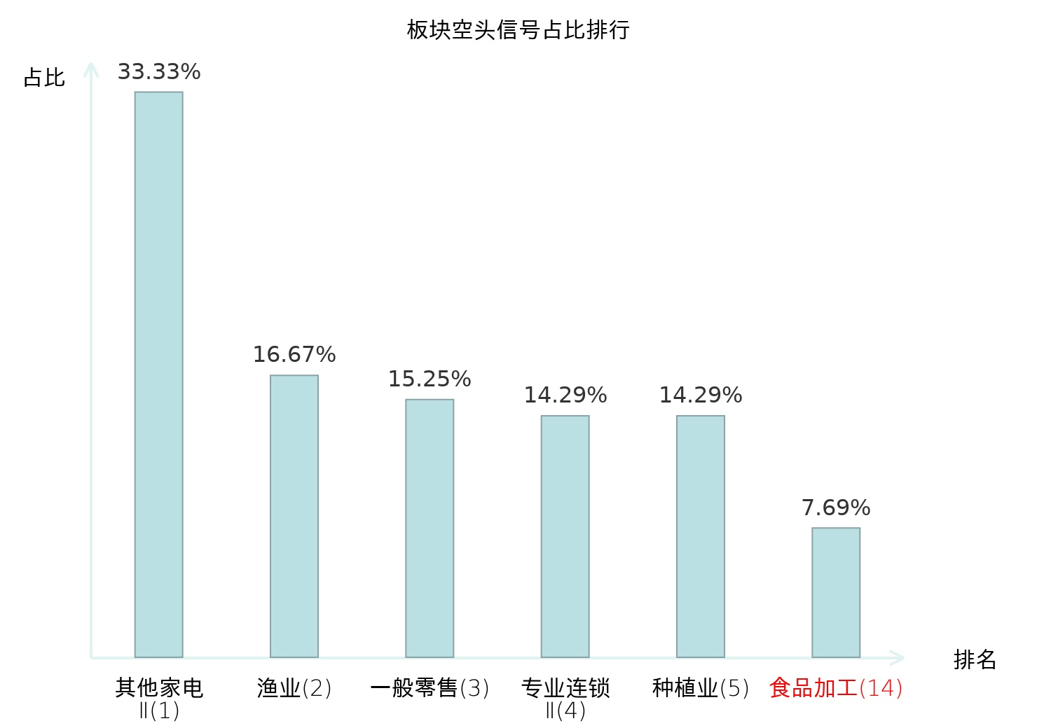 从主力宝信号数据分析,金字火腿所属的食品加工板块中共2只股票发出主力空头信号,主力空头信号占比在全行业中排名第14位,较昨日上升109位。排名上升表明主力在该板块的卖出意愿增强,对投资者判断市场情绪和潜在风险具有参考价值。全市场所有行业板块中,其他家电Ⅱ板块的主力空头信号占比最高,位居第一;造纸板块名次提升最快,较昨日上升115位。这些变动揭示了不同行业间主力资金动向的变化,为投资者提供了重要的市场趋势信息。