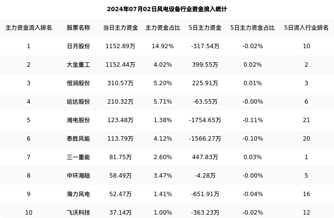 从主力资金流向来看,风电设备行业今日主力资金流入3.66亿,在所有申万二级行业中排名:103/131。