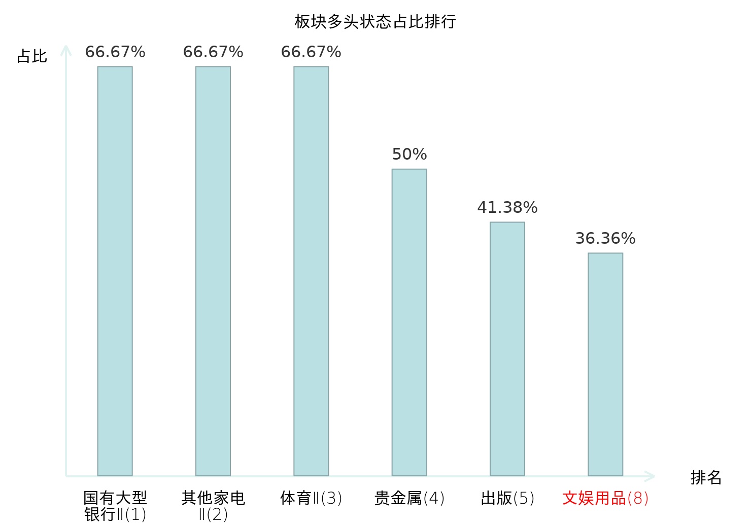 全市场所有行业板块中主力多头状态占比排名中,国有大型银行Ⅱ板块位居第一。林业Ⅱ板块名次提升最快,较昨日上升96位。