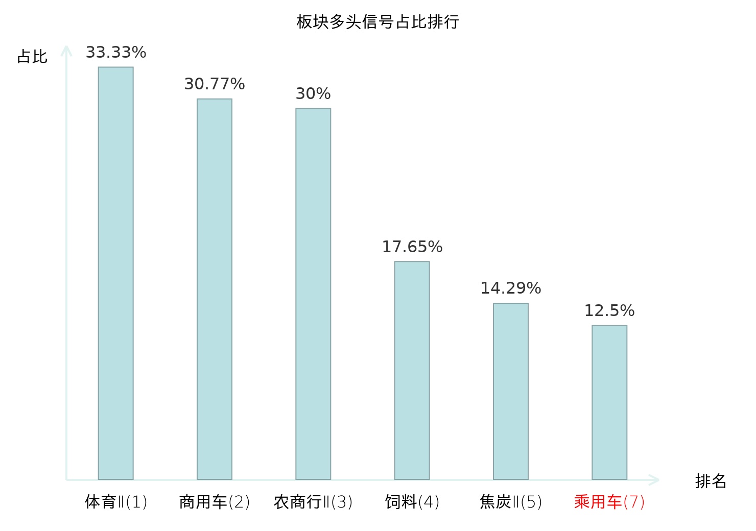 全市场所有行业板块中主力多头信号占比排名中,体育Ⅱ板块位居第一。体育Ⅱ板块名次提升最快,较昨日上升129位。