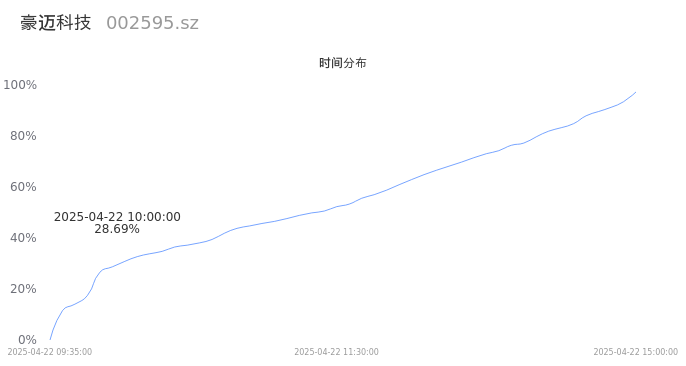 002595豪迈科技2025年04月22日成交1.57万手,成交金额8734.02万,相较昨日缩量2960手,换手率0.20%,成交清淡。