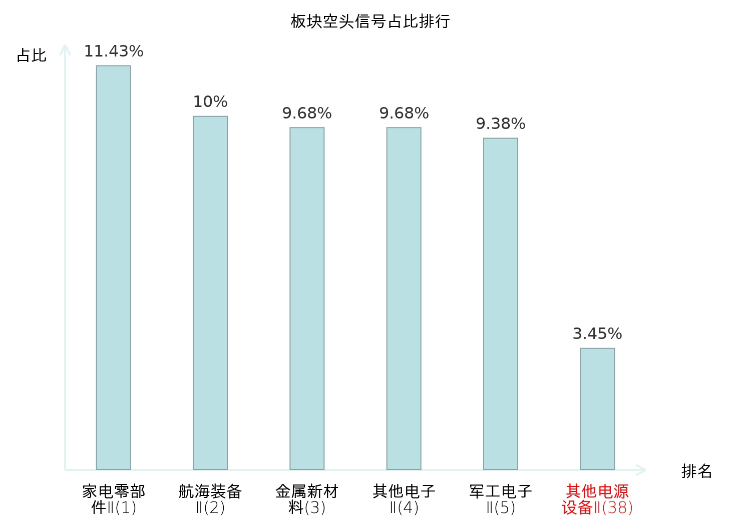 全市场所有行业板块中主力空头信号占比排名中,家电零部件Ⅱ板块位居第一。饮料乳品板块名次提升最快,较昨日上升114位。