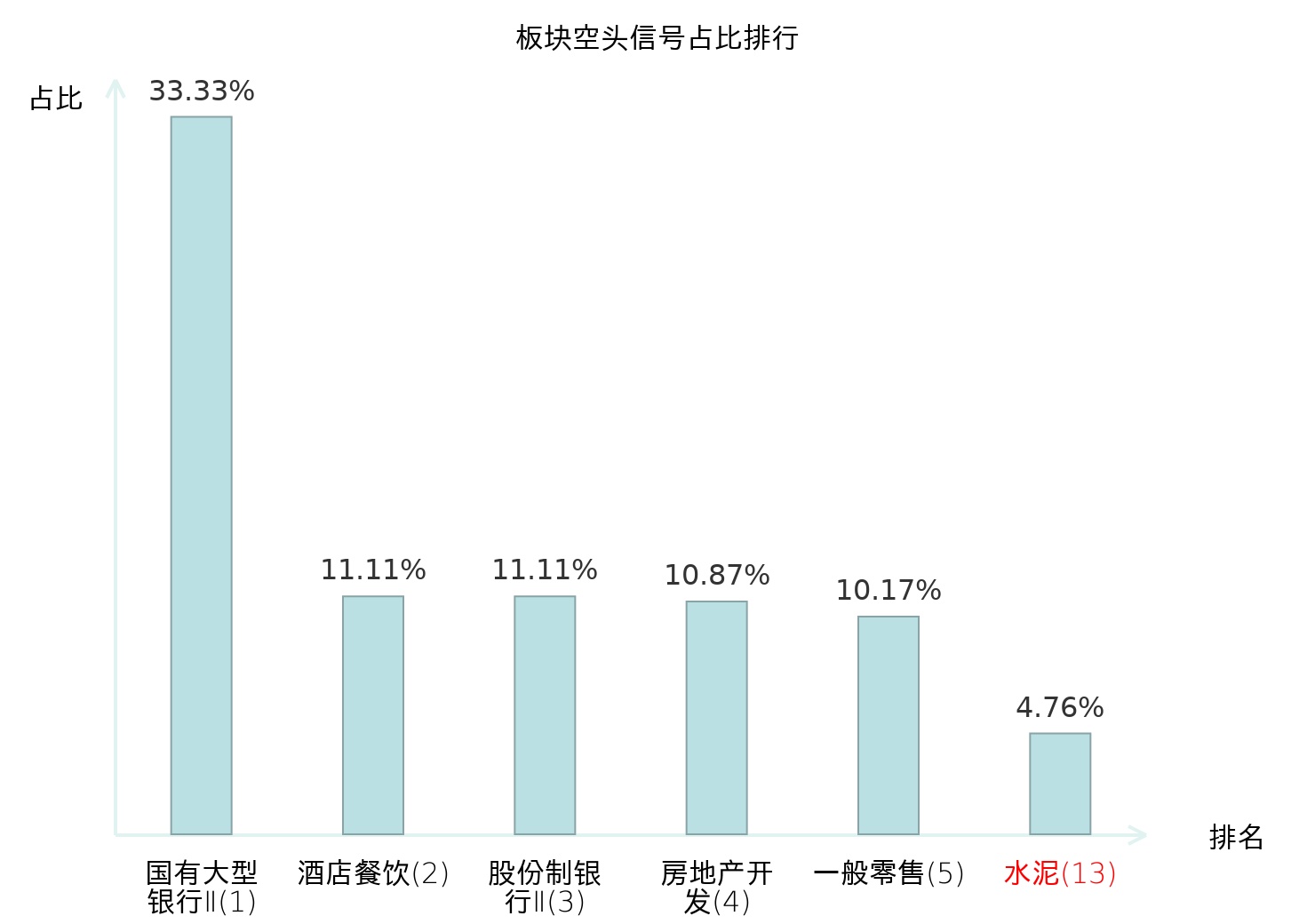 全市场所有行业板块中主力空头信号占比排名中,国有大型银行Ⅱ板块位居第一。专业工程板块名次提升最快,较昨日上升104位。