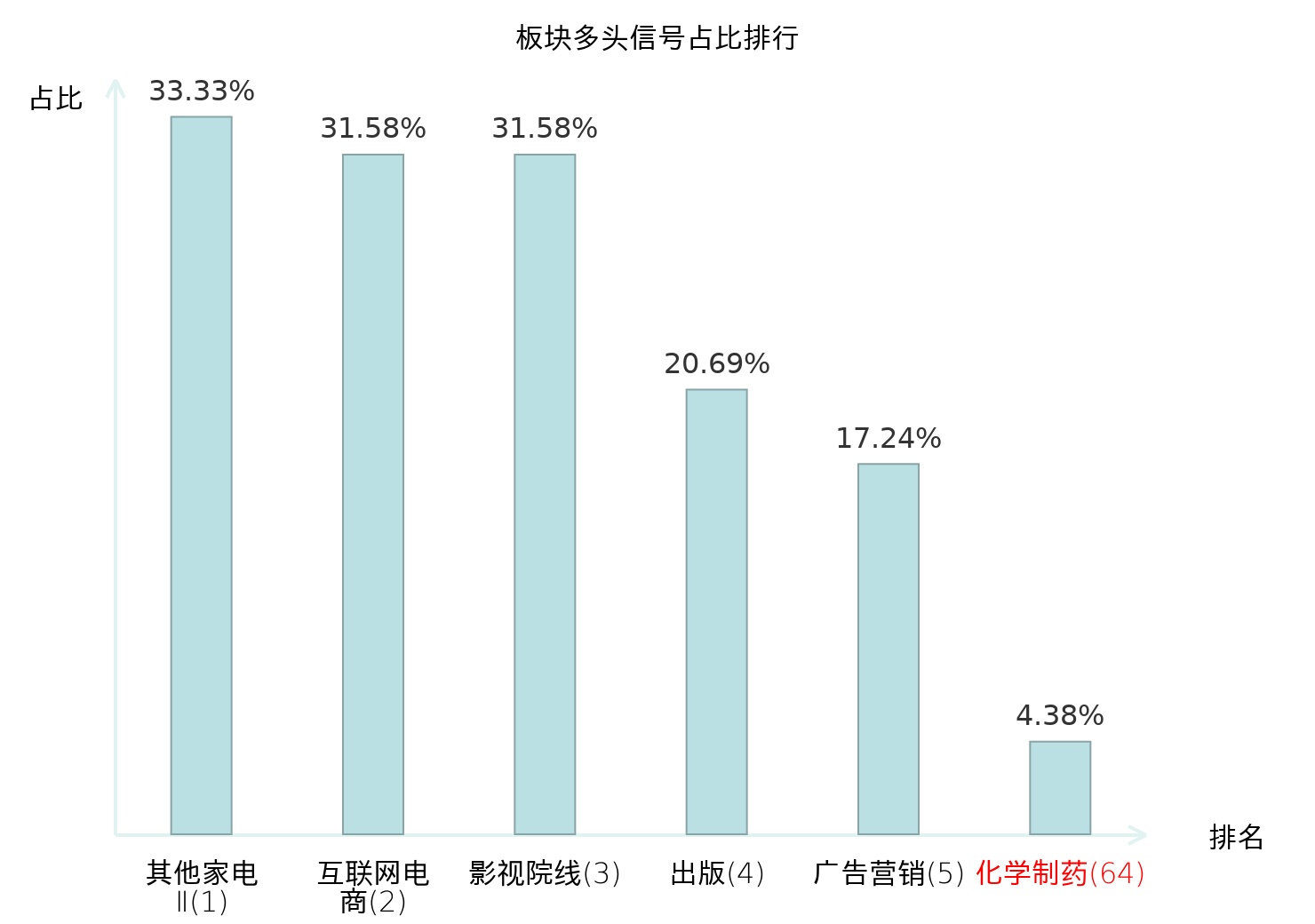 全市场所有行业板块中主力多头信号占比排名中,其他家电Ⅱ板块位居第一。其他家电Ⅱ板块名次提升最快,较昨日上升128位。