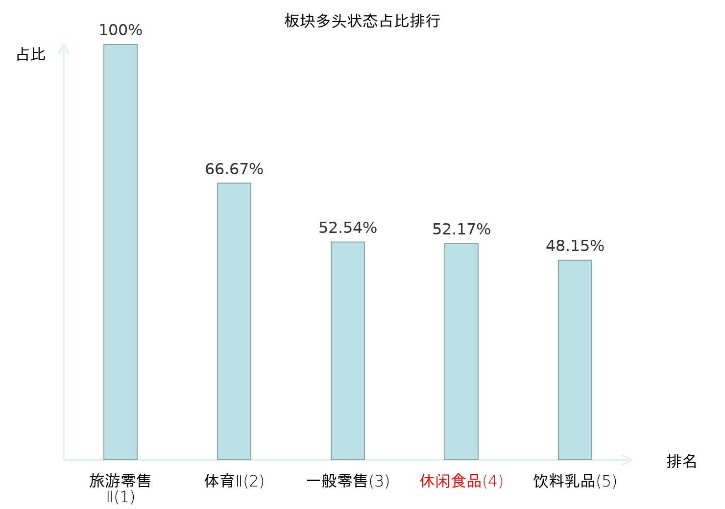 全市场所有行业板块中主力多头状态占比排名中,旅游零售Ⅱ板块位居第一。农业综合Ⅱ板块名次提升最快,较昨日上升109位。