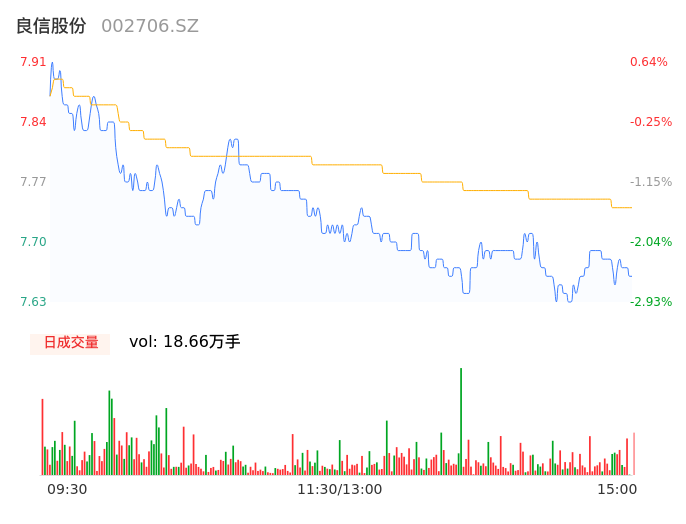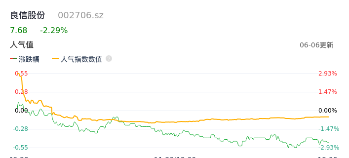 06月06日,良信股份收报7.68,股价涨幅-2.29%,成交金额1.44亿元,换手率2.05%。