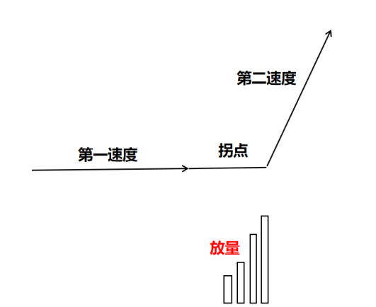 平台打拐,意思是指股价在一个平台上运行,第一速度为水平速度,之后股价突然放量突破平台,进入第二速度上行。