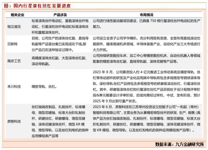 国内行星滚柱丝杠企业相关进度如下: