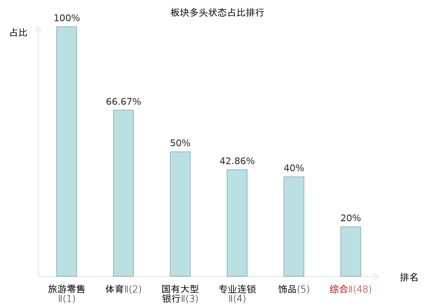 全市场所有行业板块中主力多头状态占比排名中,旅游零售Ⅱ板块位居第一。半导体板块名次提升最快,较昨日上升78位。