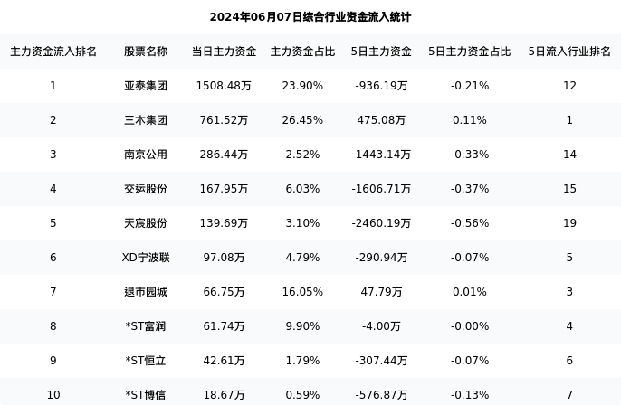 从主力资金流向来看,综合行业今日主力资金流入1.96亿元,在所有申万二级行业中排名:52/131。