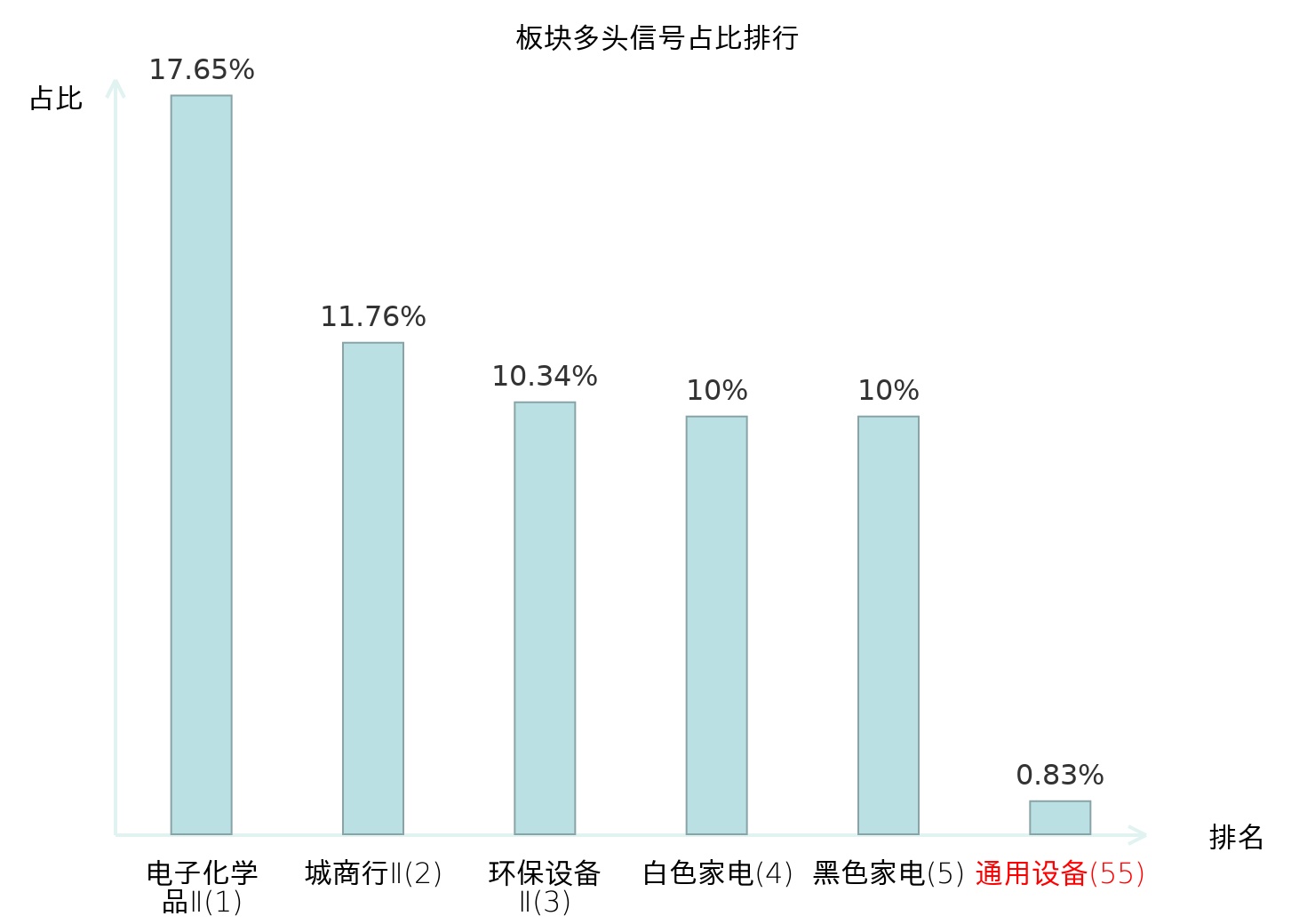 全市场所有行业板块中主力多头信号占比排名中,电子化学品Ⅱ板块位居第一。航海装备Ⅱ板块名次提升最快,较昨日上升109位。