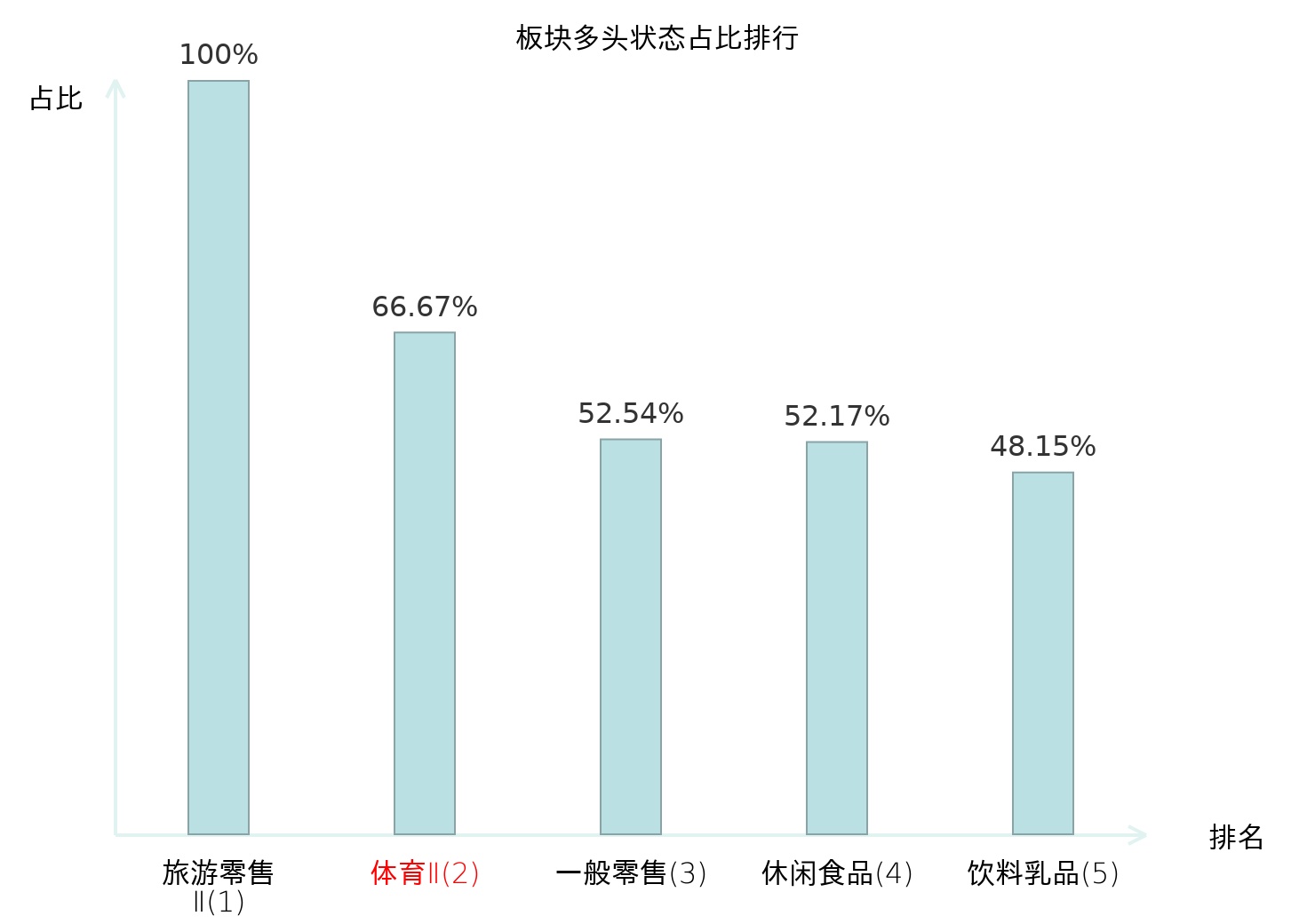 全市场所有行业板块中主力多头状态占比排名中,旅游零售Ⅱ板块位居第一。农业综合Ⅱ板块名次提升最快,较昨日上升109位。