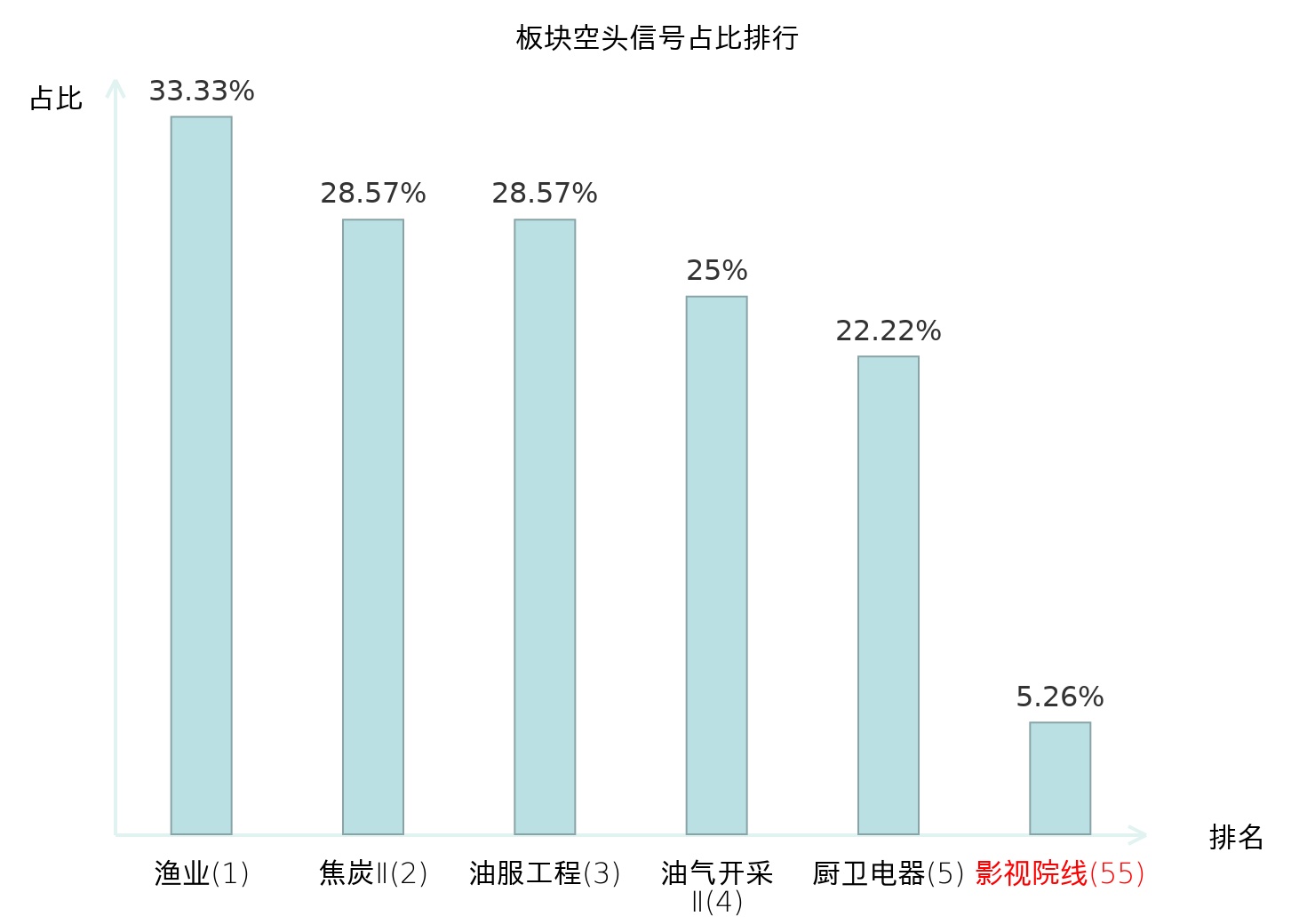 全市场所有行业板块中主力空头信号占比排名中,渔业板块位居第一。农产品加工板块名次提升最快,较昨日上升112位。