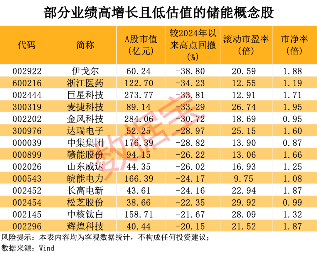 从估值水平来看,上述95只业绩高增长的储能概念股中,截至4月14日收盘,滚动市盈率(PE)低于30倍,且市净率(PB)低于2倍的有21只,其中江苏国信中集集团金风科技松芝股份处于破净状态。