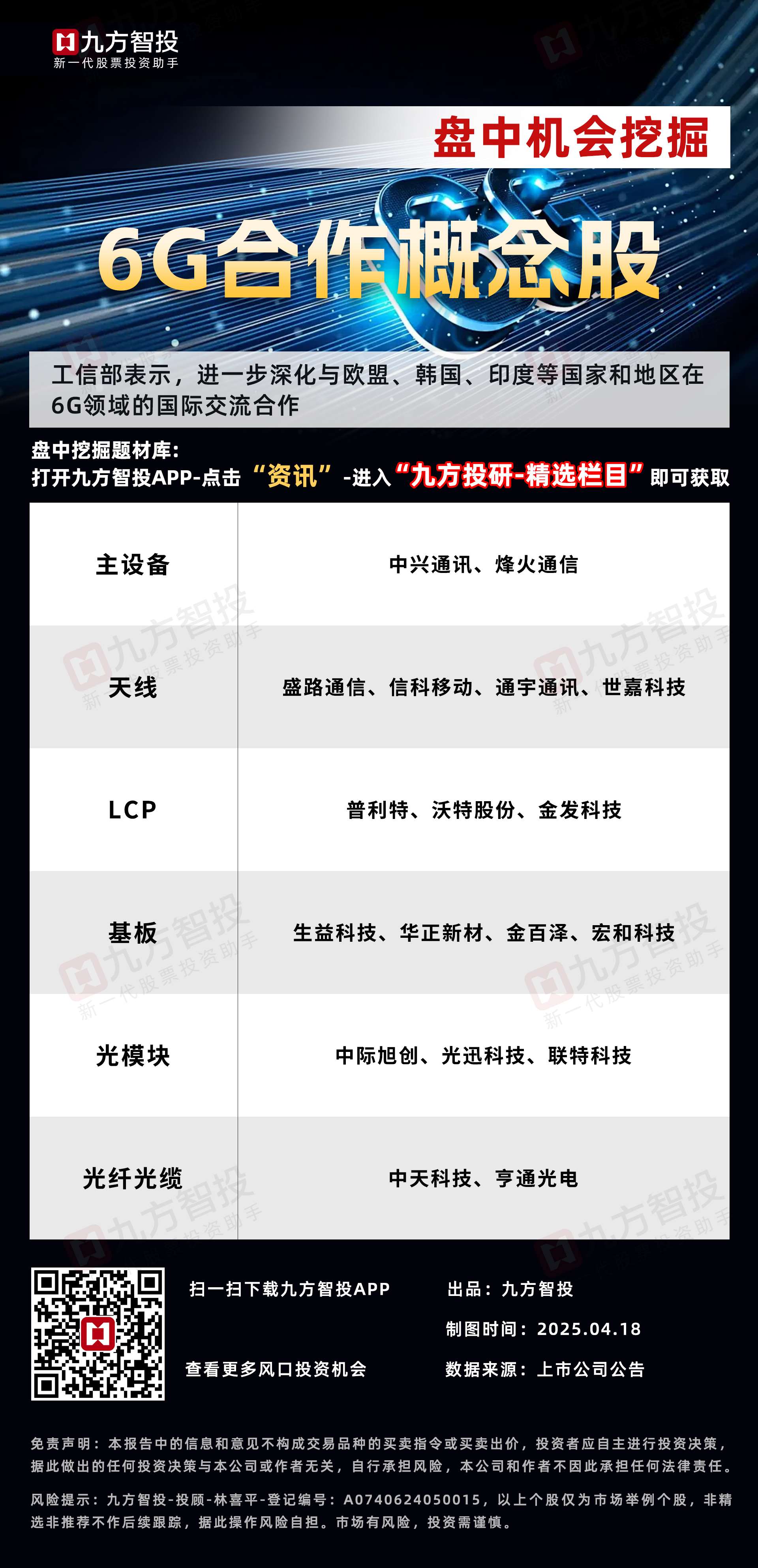 4、临近尾盘消息刺激,6G概念股大幅上涨;