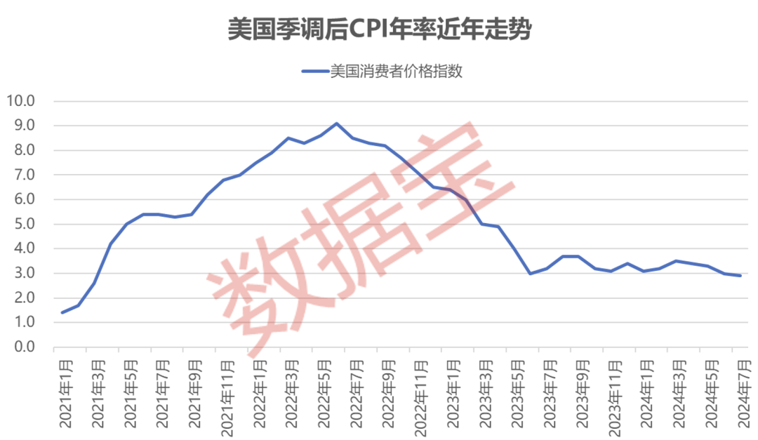 央视新闻报道,美国劳工统计局公布数据显示,7月美国消费者价格指数(CPI)环比增长0.2%,经季节性调整前同比增长2.9%。当月,剔除波动较大的食品和能源价格后,核心CPI环比增长0.2%,经季节性调整前同比增长3.2%。数据显示,这是美国季调后CPI年率自2021年3月以来首次重回“2字头”,低于市场预期的3%。