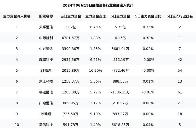 从主力资金流向来看,通信设备行业今日主力资金流入91.35亿,在所有申万二级行业中排名:71/131。