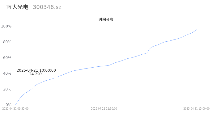 300346南大光电2025年04月21日成交11.54万手,成交金额4.31亿,相较昨日缩量9.90万手,换手率2.11%,成交清淡。