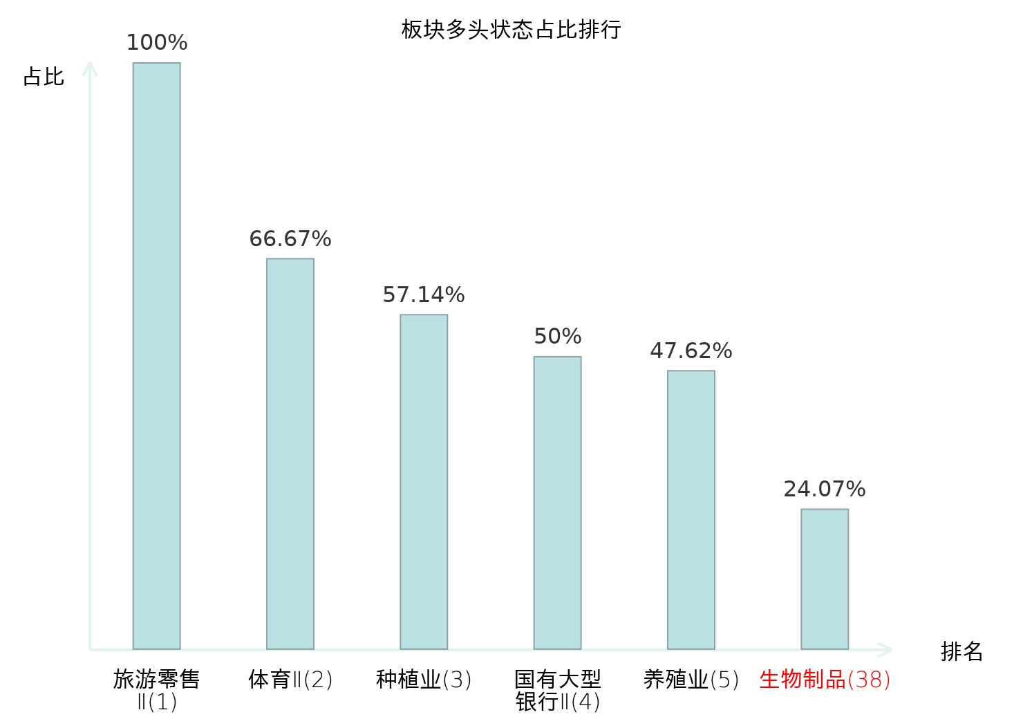 全市场所有行业板块中主力多头状态占比排名中,旅游零售Ⅱ板块位居第一。互联网电商板块名次提升最快,较昨日上升89位。
