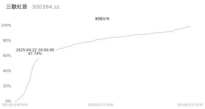 根据成交分布分析,该股票当天放量成交,成交清淡。时间上看,早盘前半小时成交量占据当天总成交量的47.74%;价格上看,成交呈现中间峰。成交分布分析主要研究股票成交的分布特性,不具有预测功能,请知悉。