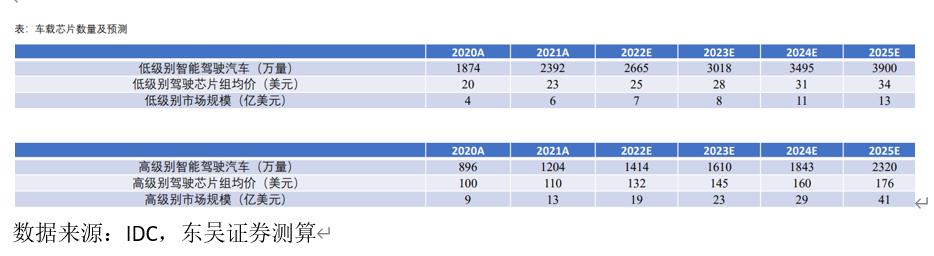 目前,自动驾驶芯片市场处于快速发展时期,东吴证券测算,智能驾驶芯片市场将从2021年的19亿美元增长到2025年的54亿美元,2021~2025的年复合增长率(CAGR)为30%。