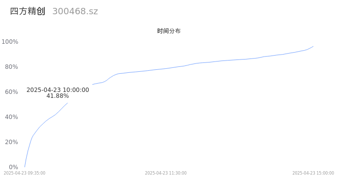 300468四方精创2025年04月23日成交147.78万手,成交金额33.96亿,相较昨日缩量20.48万手,换手率27.94%,成交活跃。