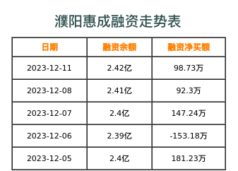 综上,濮阳惠成当前两融差额为2.42亿,近5个交易日累计上升0.9%