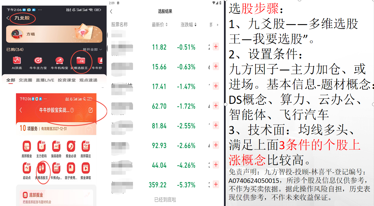 步骤如下图:九爻股——多维选股王—添加条件:主力加仓或者进场的、概念DeepSeek、算力、行汽车、AI眼镜、个股趋势多头的,均线看多的,如图: