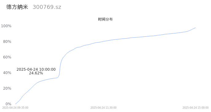 300769德方纳米2025年04月24日成交10.29万手,成交金额2.92亿,相较昨日放量5.39万手,换手率4.09%,成交清淡。