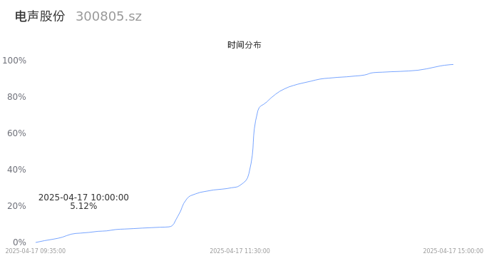 300805电声股份2025年04月17日成交28.39万手,成交金额2.97亿,相较昨日放量21.68万手,换手率9.85%,成交清淡。