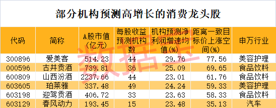 上述这30只超跌龙头股未来增长潜力同样值得期待。根据5家以上机构一致预测,今后三年净利润增速均有望超20%的有6只,分别是爱美客、古井贡酒、春风动力、珀莱雅、山西汾酒、迎驾贡酒。