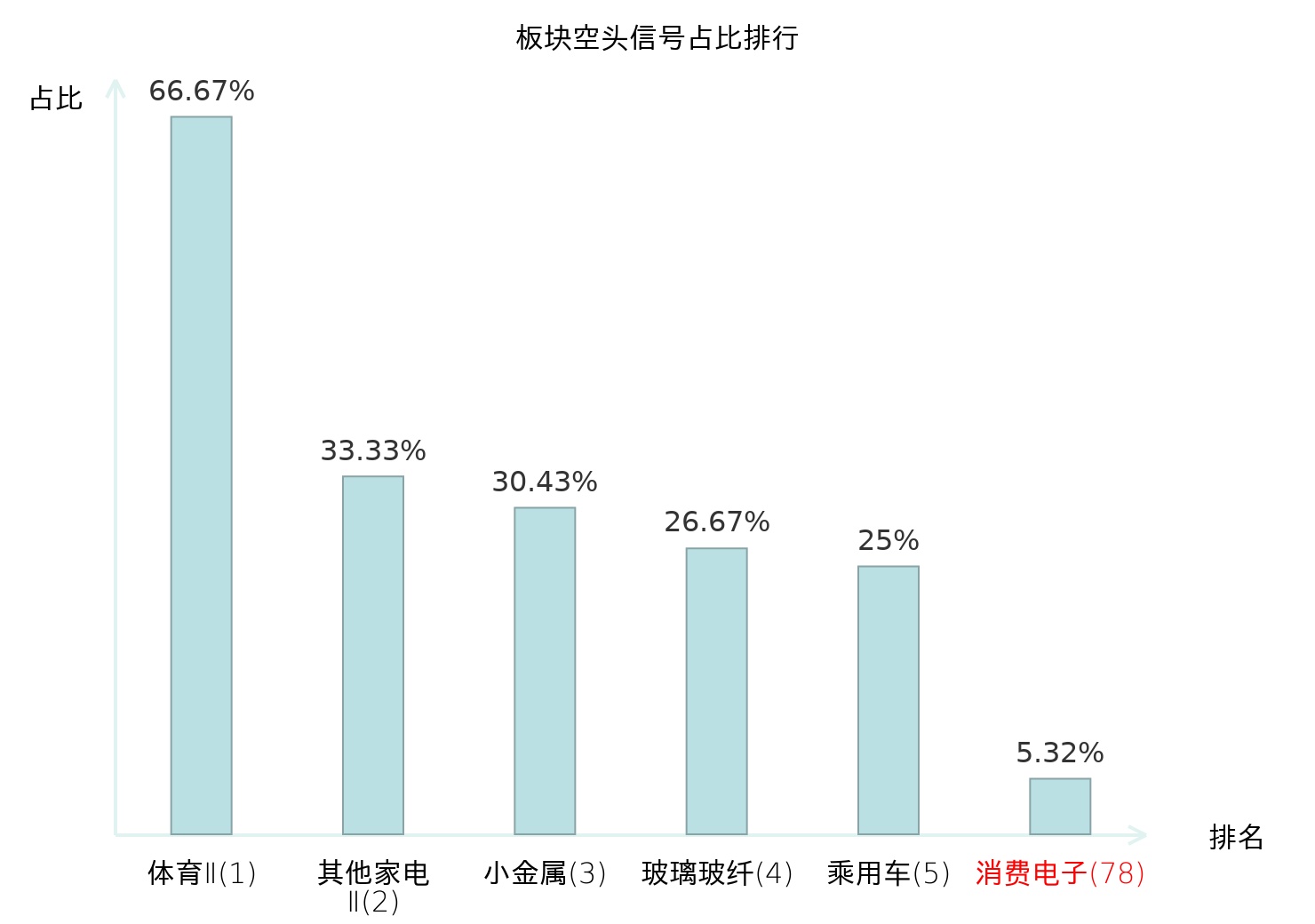 全市场所有行业板块中主力空头信号占比排名中,体育Ⅱ板块位居第一。光伏设备板块名次提升最快,较昨日上升113位。