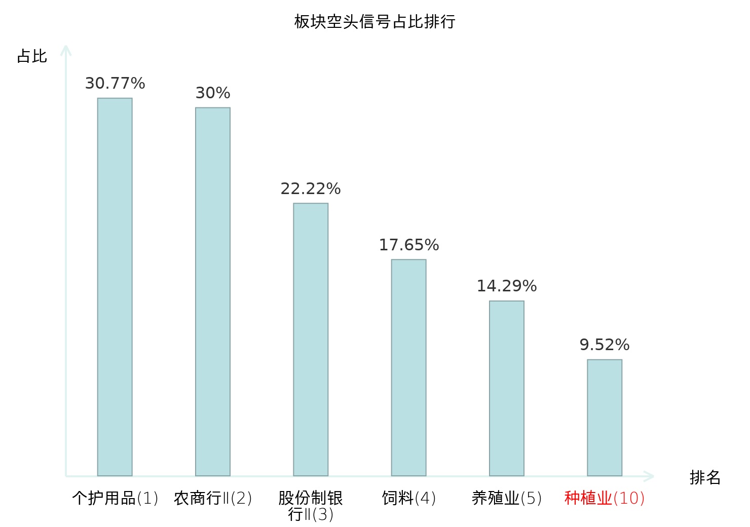从主力宝信号数据分析,华绿生物所属的种植业板块中共2只股票发出主力空头信号,主力空头信号占比在全行业中排名第10位,较昨日下降5位。排名较高说明主力当日卖出意愿较强,此次排名下降可能反映了主力对该板块态度的变化。全市场所有行业板块中,个护用品板块的主力空头信号占比排名最高,位居第一。个护用品板块名次提升最快,较昨日上升103位。这些变动揭示了不同行业间主力资金偏好的变化,为投资者理解市场动态提供了重要参考。