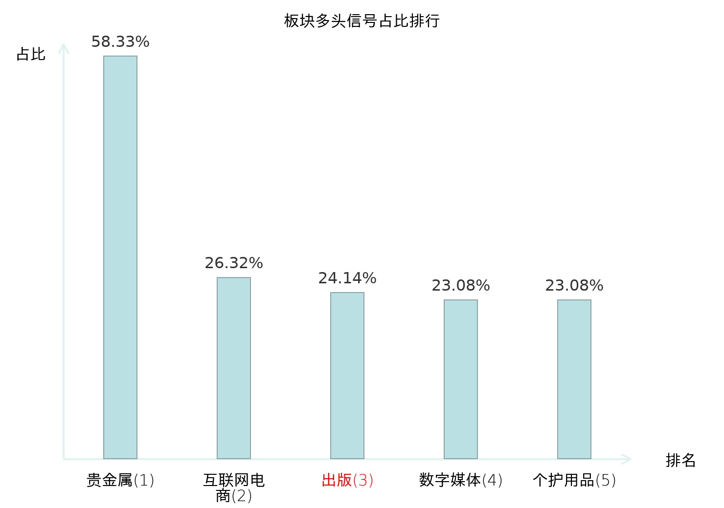 从主力宝信号数据分析,读客文化所属的出版板块中共有7只股票发出主力多头信号,主力多头信号占比在全行业中排名第3位,较昨日上升29位。排名的提升反映出主力对出版行业的买入意愿增强,为主力资金流入该板块提供了重要信号。全市场所有行业板块中,贵金属板块的主力多头信号占比最高,位居第一,名次提升最快,较昨日上升108位。这些变动揭示了不同行业间主力资金动向的变化,为投资者提供了市场情绪和投资机会的重要参考。