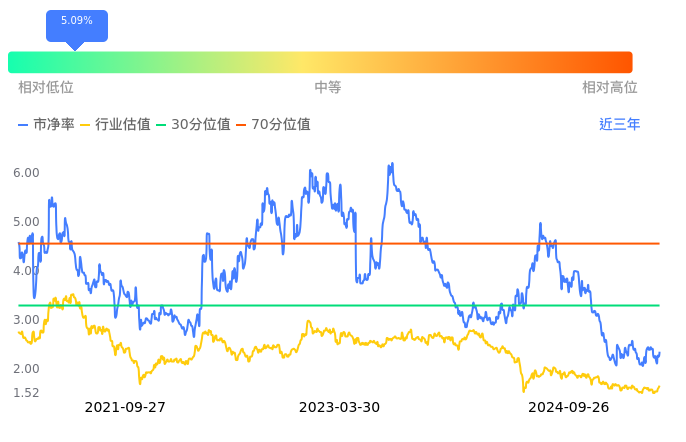 仕净科技当前市净率PB为2.36,在所属的环保设备中,市净率PB排23,前五名分别为盈峰环境市净率0.80、菲达环保市净率0.84、碧兴物联市净率1.08、力合科技市净率1.08、华宏科技市净率1.10。仕净科技当前市净率PB为2.36,超过近3年5.09%的历史数据。