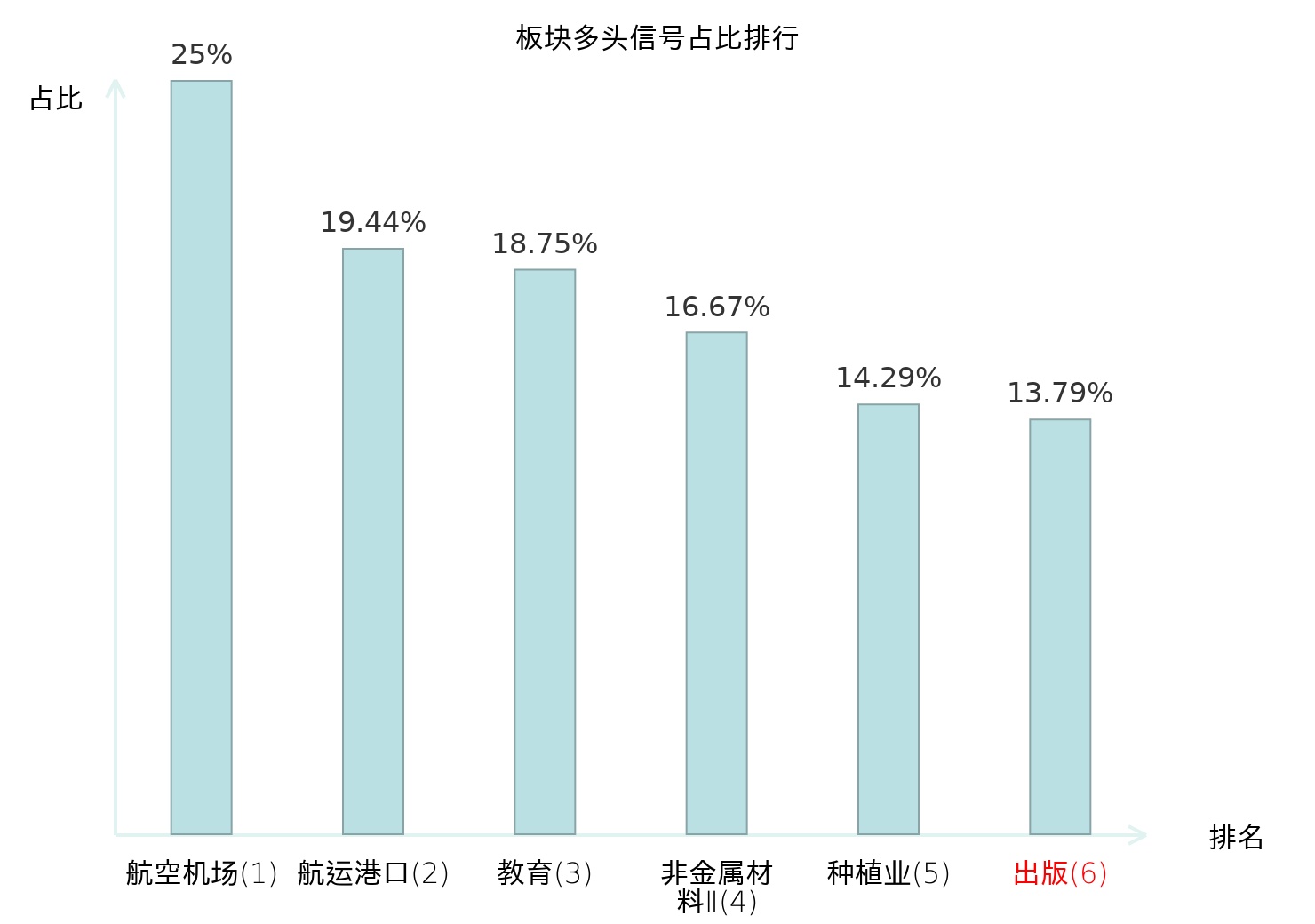 从主力宝信号数据分析,果麦文化所属的出版板块中共4只股票发出主力多头信号,主力多头信号占比在全行业中排名第6位,较昨日上升13位。较高的排名表明主力当日买入意愿较强,此次排名上升可能反映了主力对该板块态度的积极变化,为投资者提供了一定的参考价值。全市场所有行业板块中主力多头信号占比排名中,航空机场板块位居第一。航空机场板块名次提升最快,较昨日上升111位。这些变动揭示了不同行业间主力资金偏好的变化,有助于投资者理解当前市场的动态和趋势。