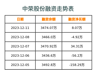 综上,中荣股份当前两融差额为0.35亿,近5个交易日累计下降0.54%