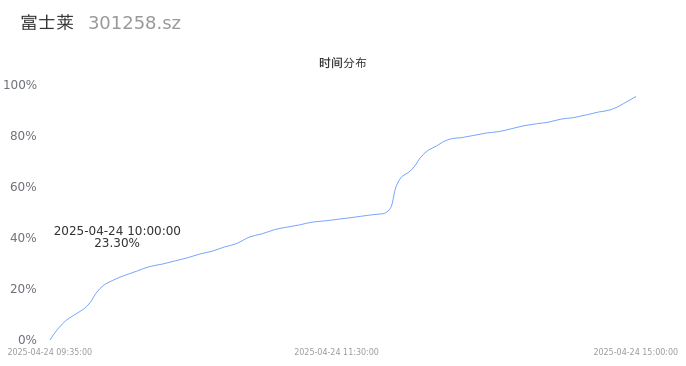 301258富士莱2025年04月24日成交9.47万手,成交金额2.62亿,相较昨日缩量1.25万手,换手率27.96%,成交活跃。