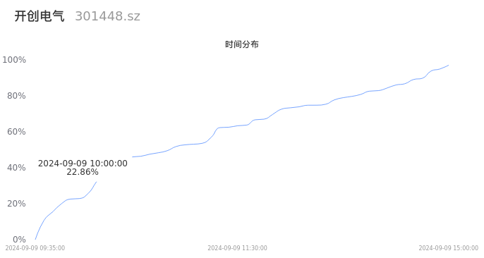 301448开创电气2024年09月09日成交4891手,成交金额871.41万,相较昨日缩量1477手,换手率1.02%,成交清淡。