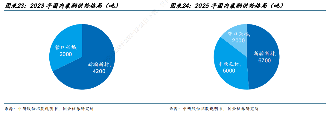 产业链价值方面,上游原材料和设备是PEEK材料的核心所在。原材料这块,全球氟酮产能集中在我国,国内产能充足。2023年国内主要由新瀚新材和营口兴福供应氟酮,产能分别为4200和2000吨。2023年中欣氟材和新瀚新材分别新增5000、2500吨氟酮进入试生产阶段,2025年全国氟酮总产能有望达1.37万吨。